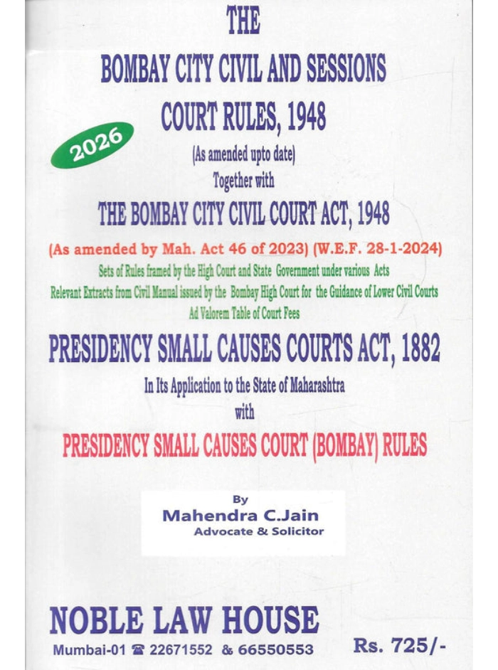 This edition provides a consolidated and amended text of the Bombay City Civil Court Rules, 1948 together with relevant provisions of the Bombay City Civil Court Act and Presidency Small Causes Courts Act as applicable to Maharashtra. It incorporates recent amendments, updated ad valorem court fee tables, and procedural directions issued by the High Court. The book assists advocates in drafting pleadings, filing suits, calculating court fees, and navigating jurisdictional requirements of Mumbai’s civil courts. Organized for quick reference, it is a dependable courtroom companion for litigators practicing before the City Civil and Sessions Courts. Its updated content ensures procedural accuracy and compliance in civil litigation practice within Maharashtra.