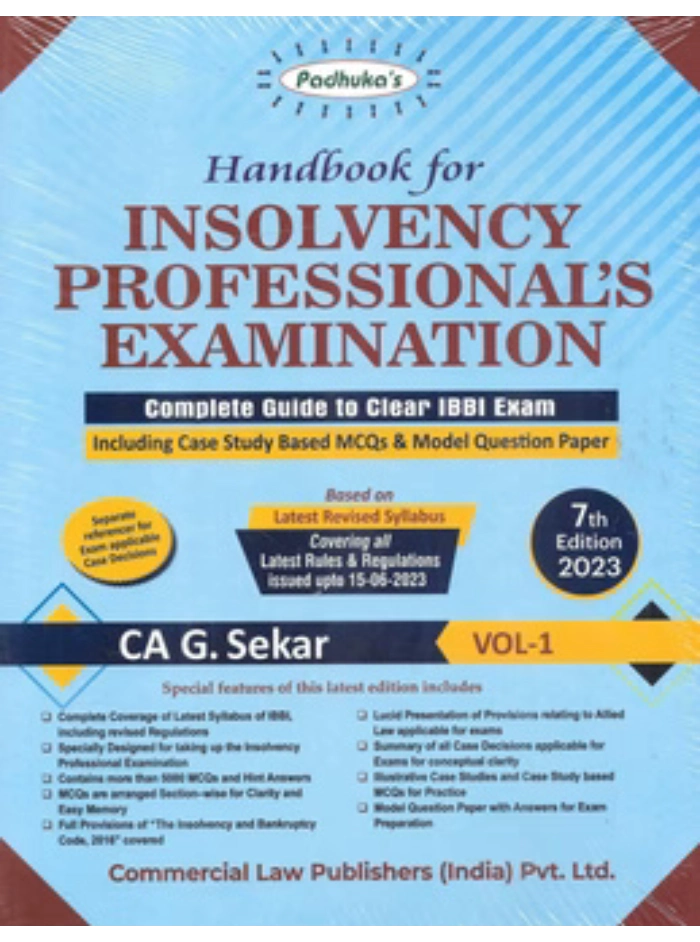 Handbook for Insolvency Professional’s Examination (In 2 Volumes) is an extensive and exam-focused resource tailored for candidates appearing for the Insolvency Professional (IP) certification examination conducted under the Insolvency and Bankruptcy Code, 2016. Designed to align with the prescribed syllabus, the book provides systematic coverage of the legal, procedural, and practical aspects of insolvency law in India.